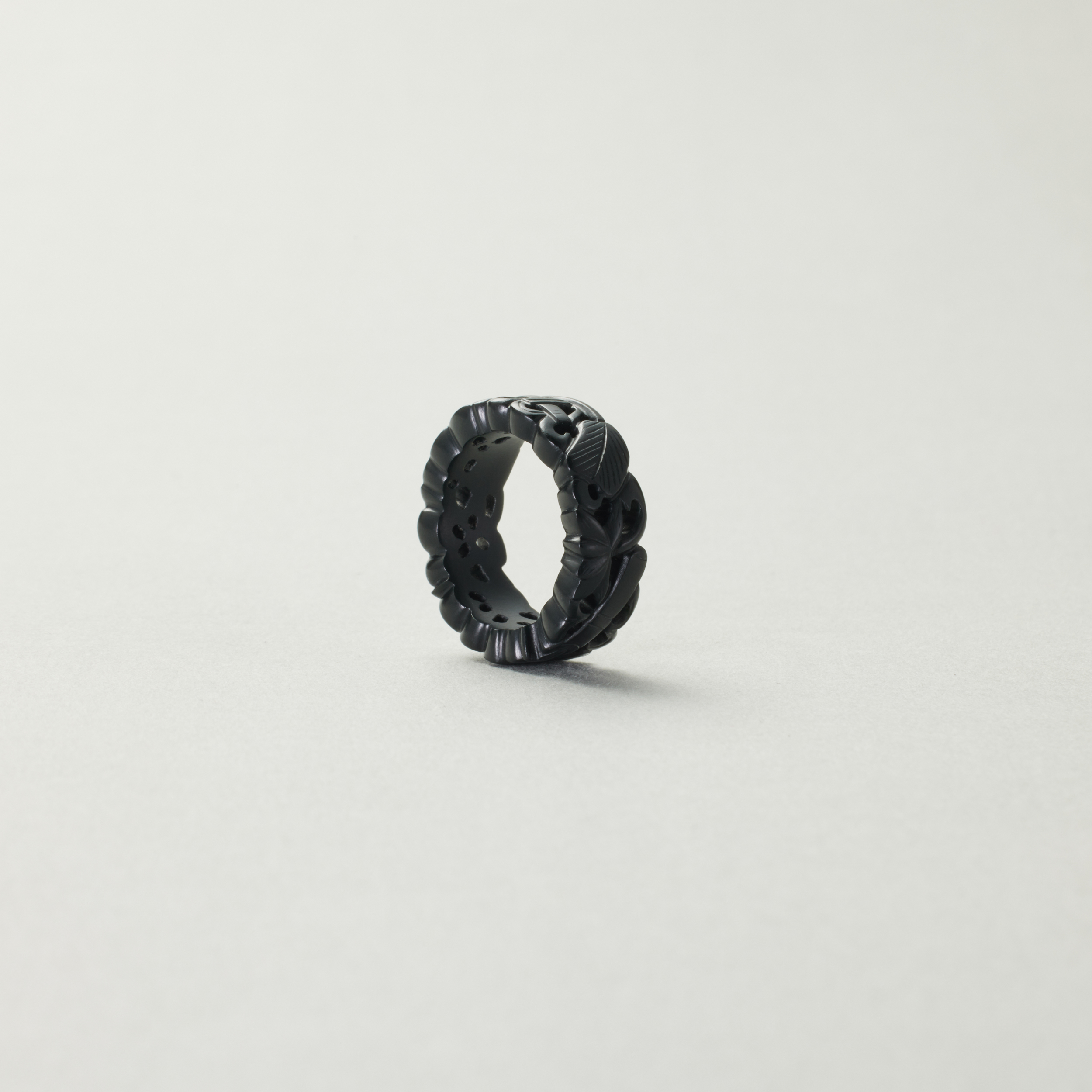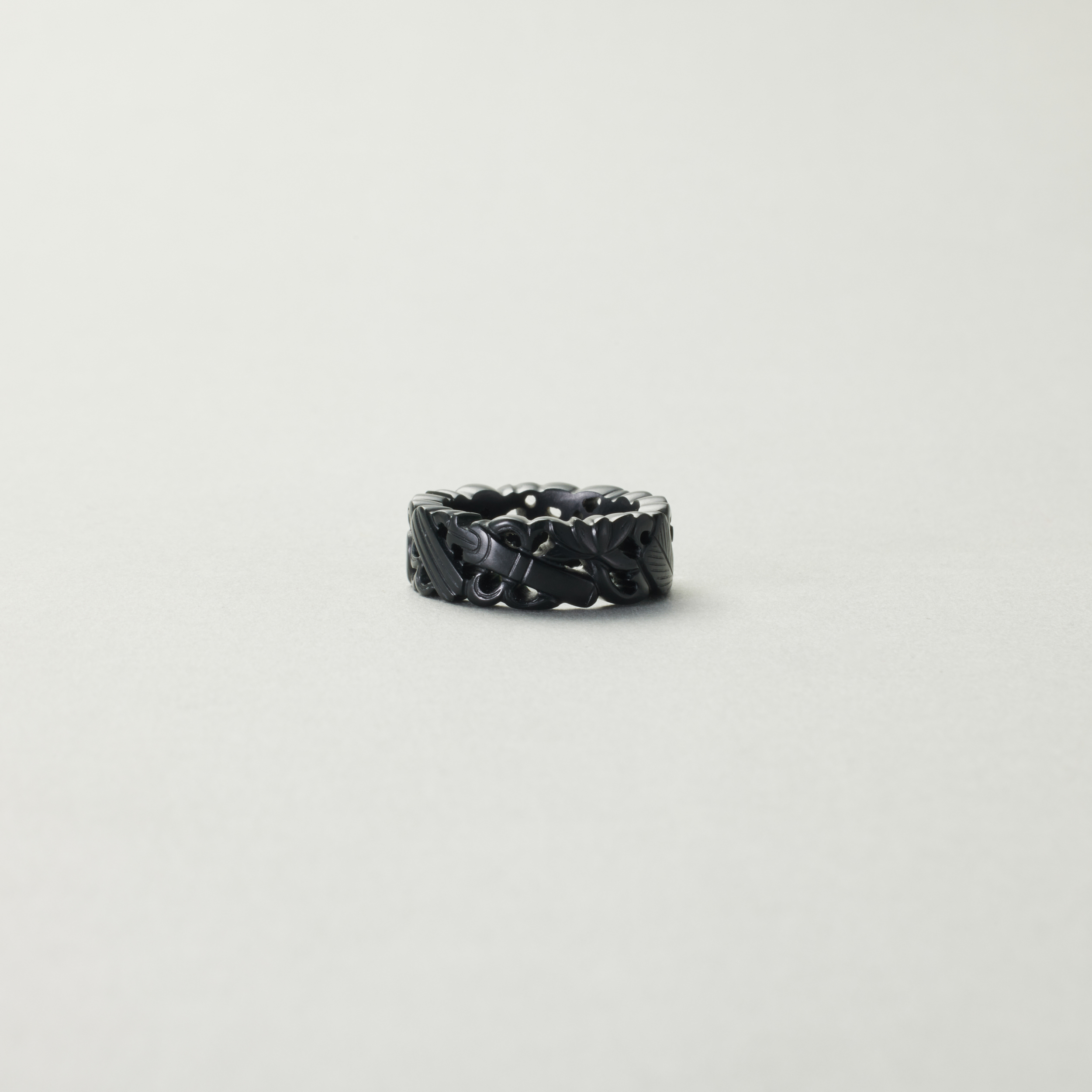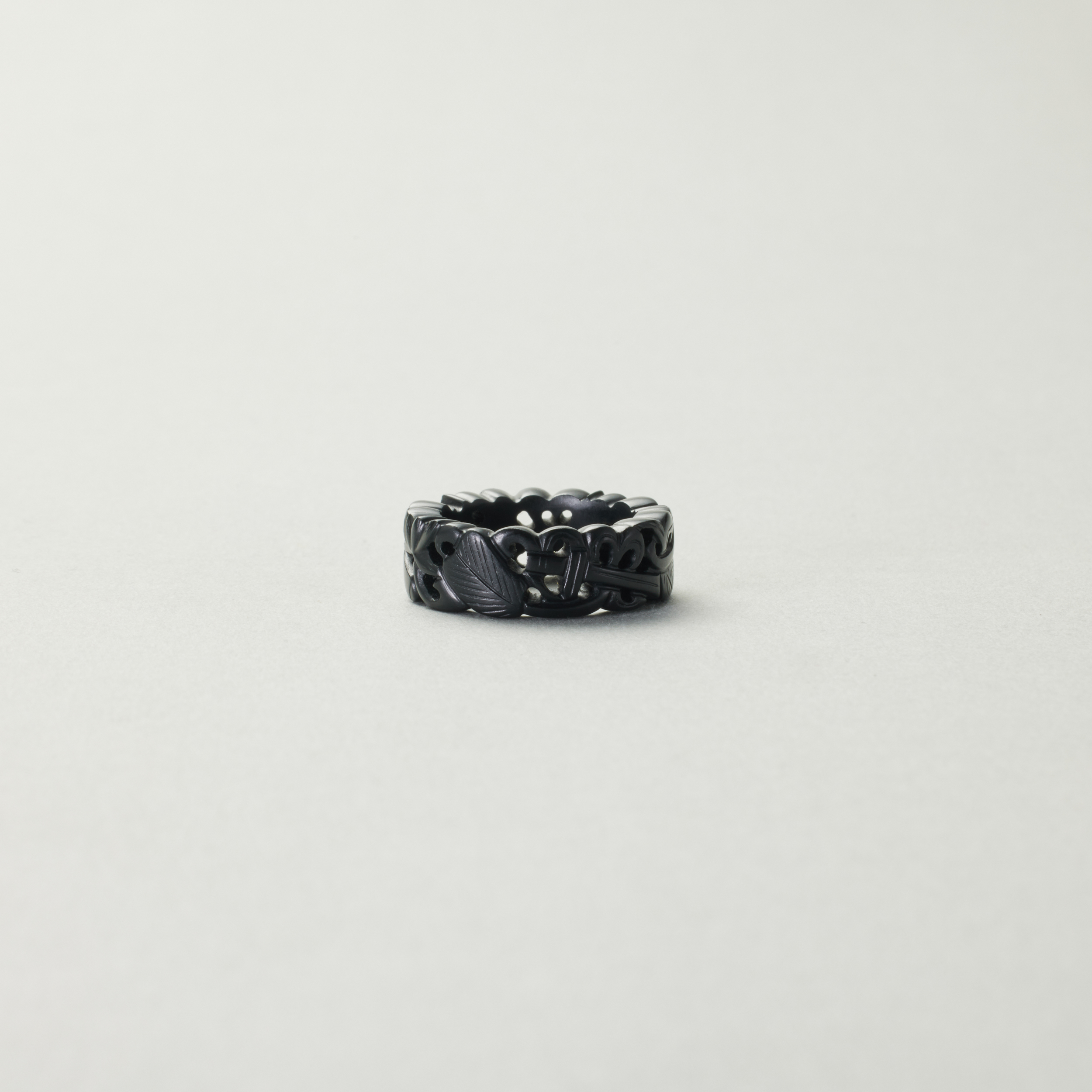 八宝透雕墨玉窄版戒指