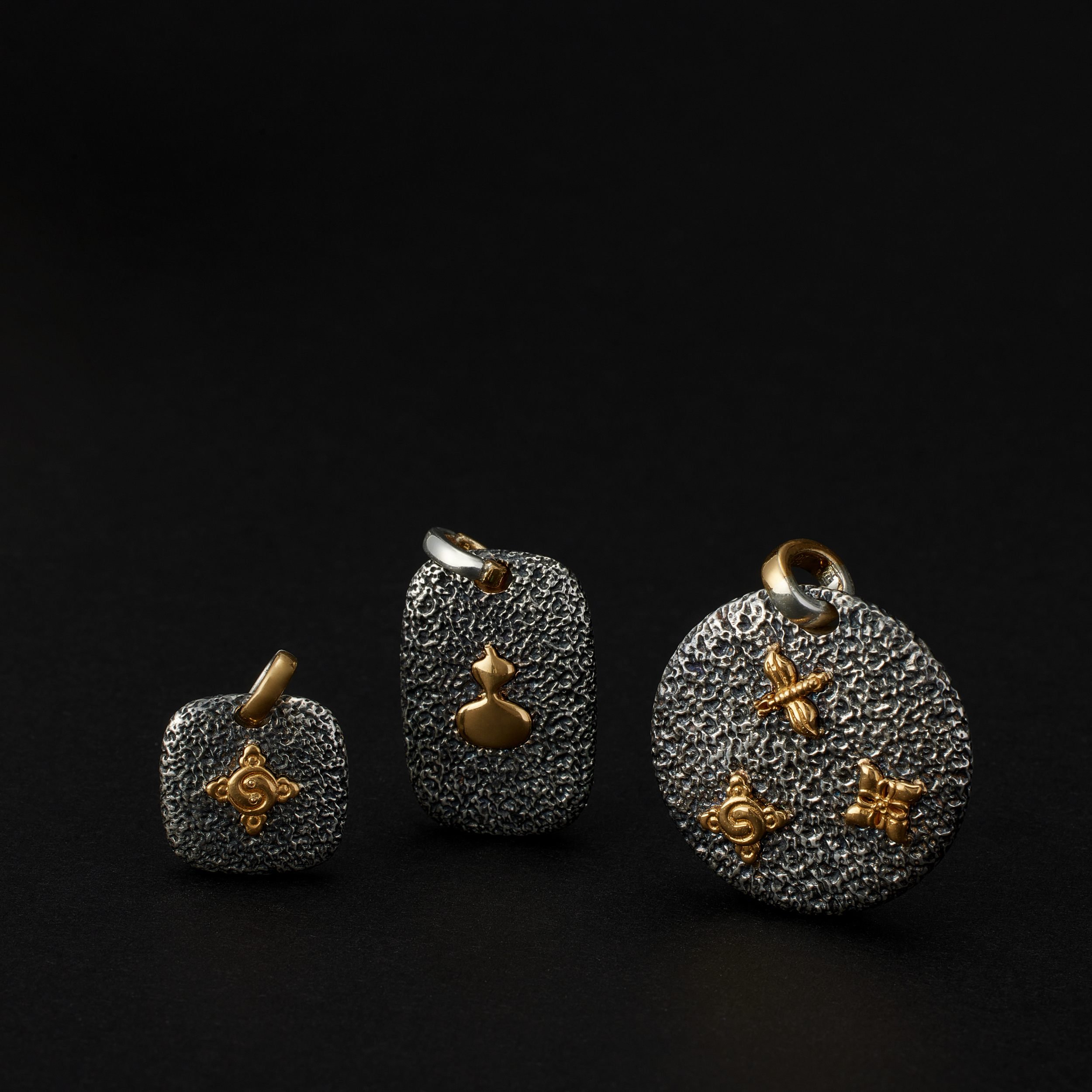 「 反正有光 」银嵌22K金平安牌挂坠