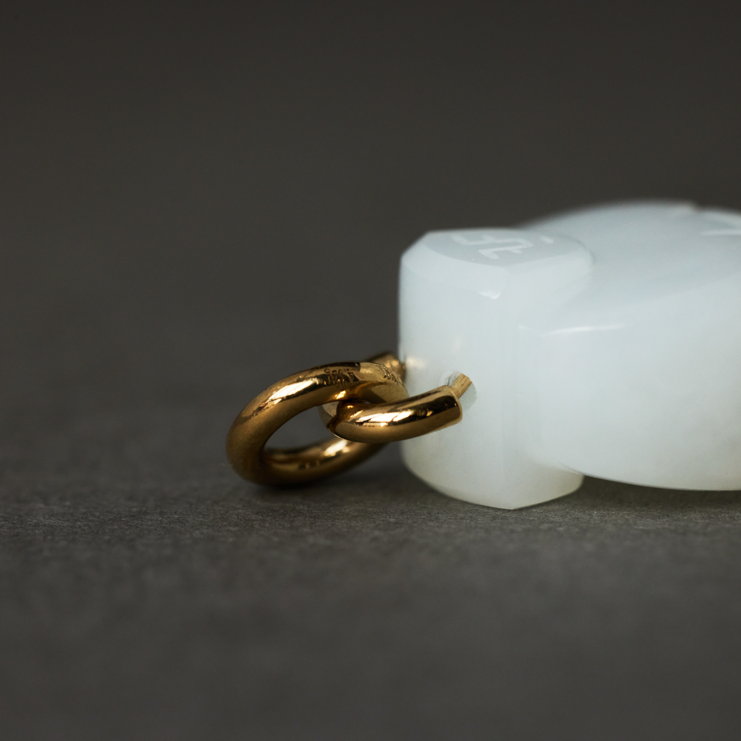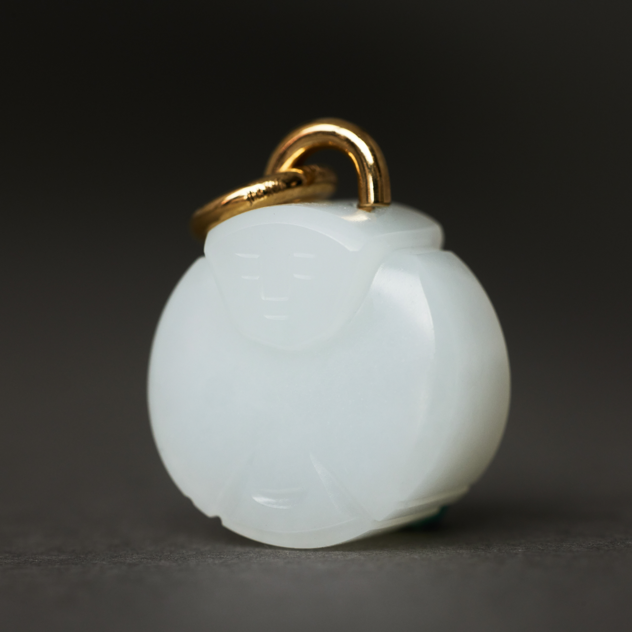选用上等和田白玉手工雕刻,憨态可掬的阿福造型,寓意平和、圆满、知足常乐