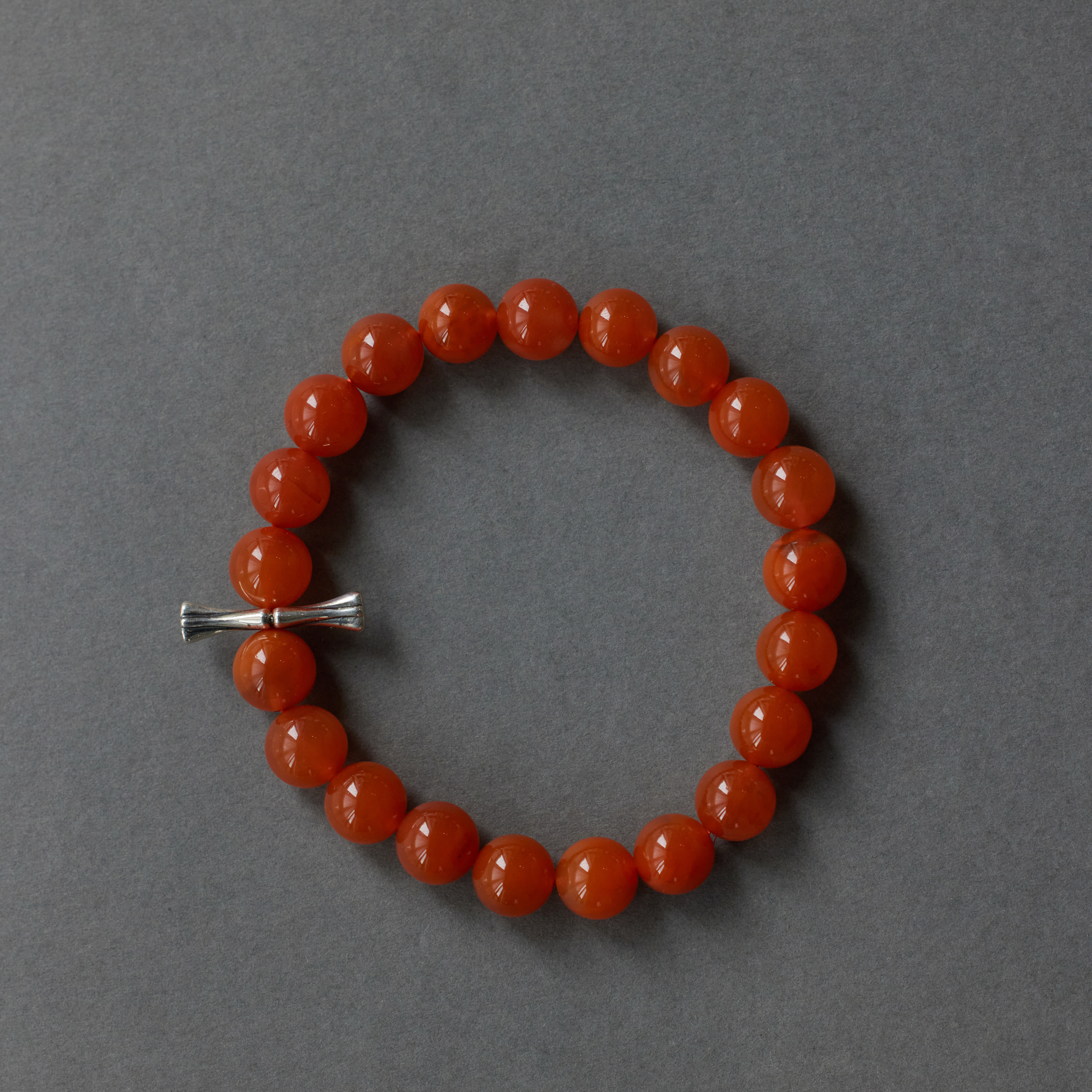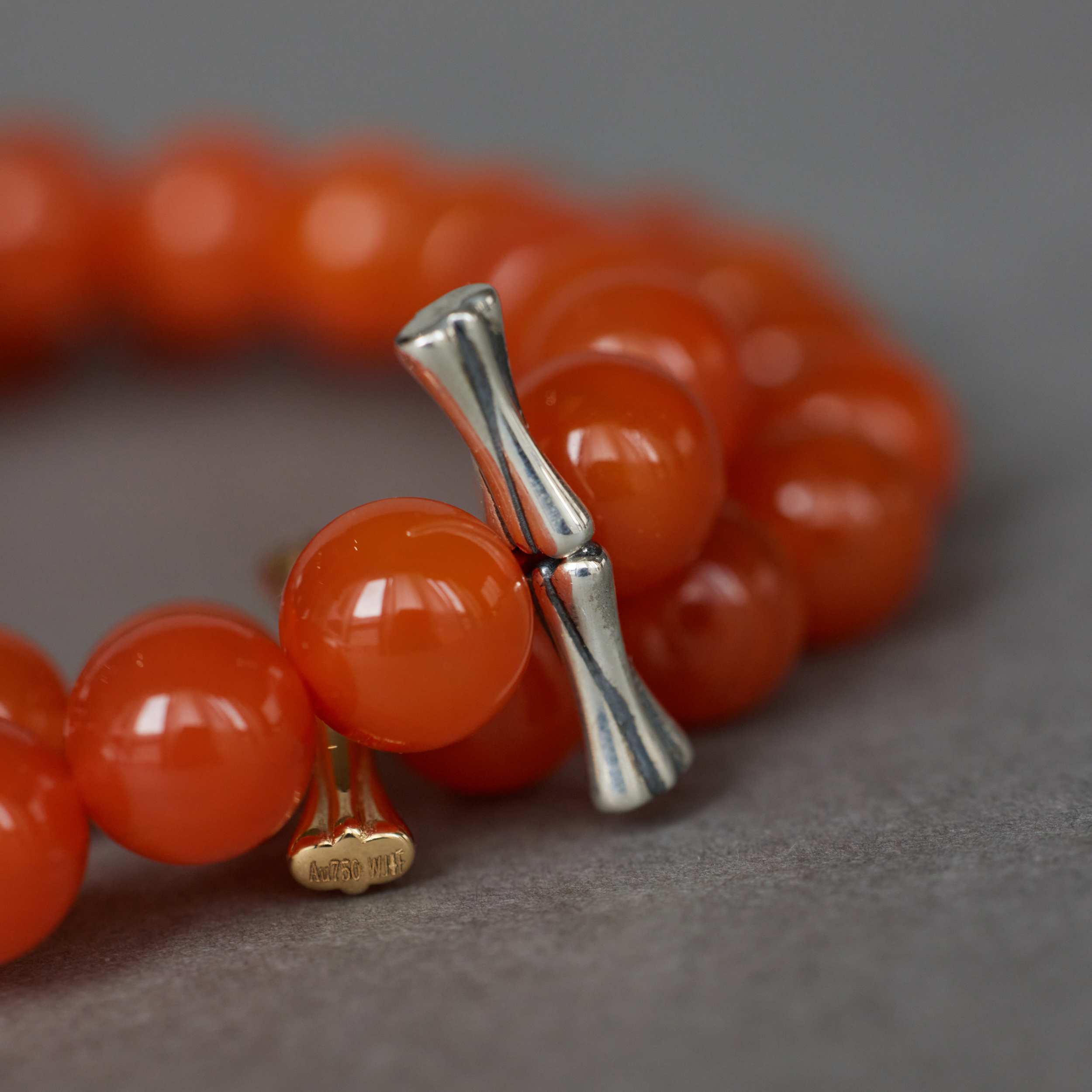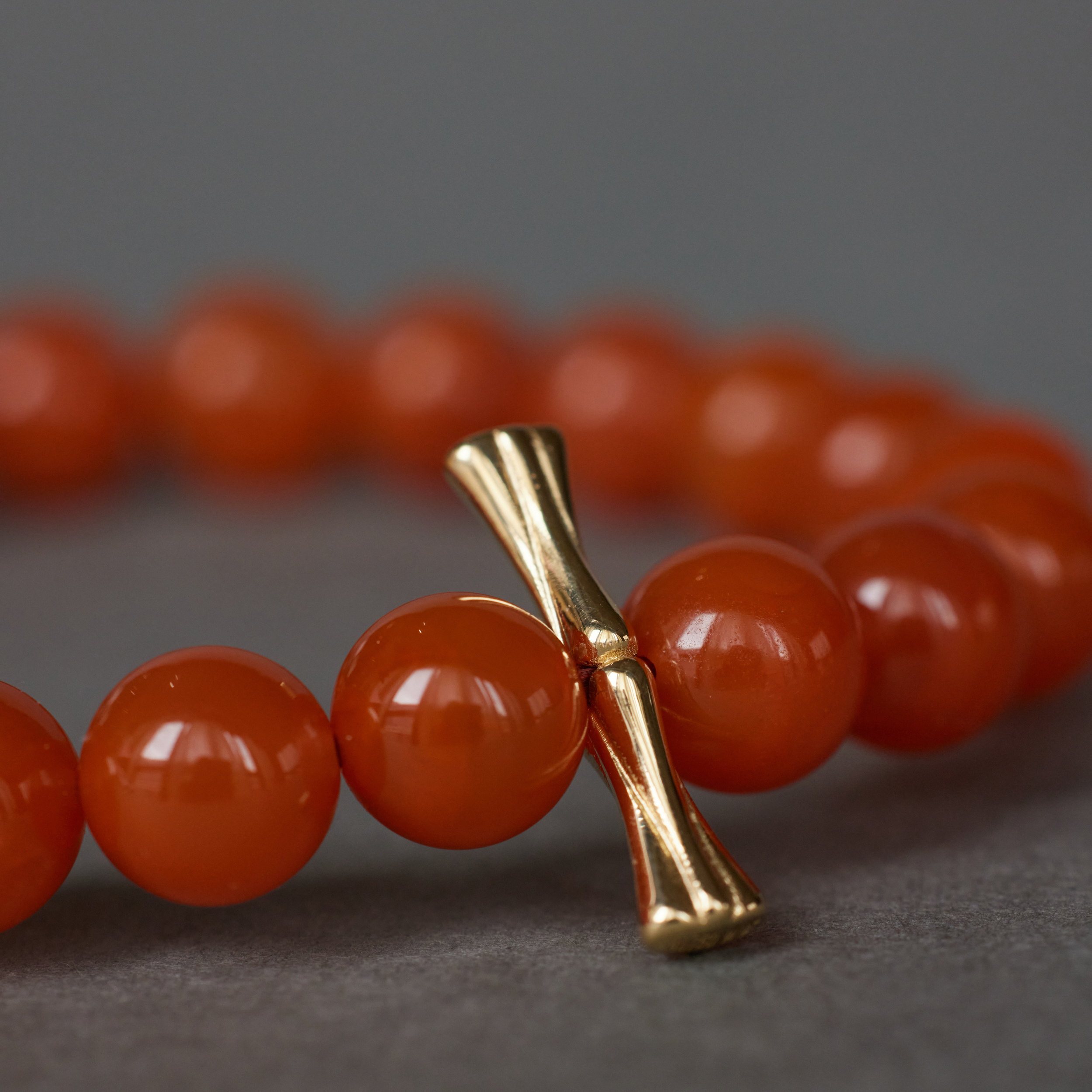 当然,如果只是⼀串规规整整的⽟珠,那倒也不⼀定⾮WJIE来做。妙处,是那⼀根⽵节——或⾦,或银,像根⼩簪⼦,插在珠串中间,不⼤的⼀笔,却点醒了整串