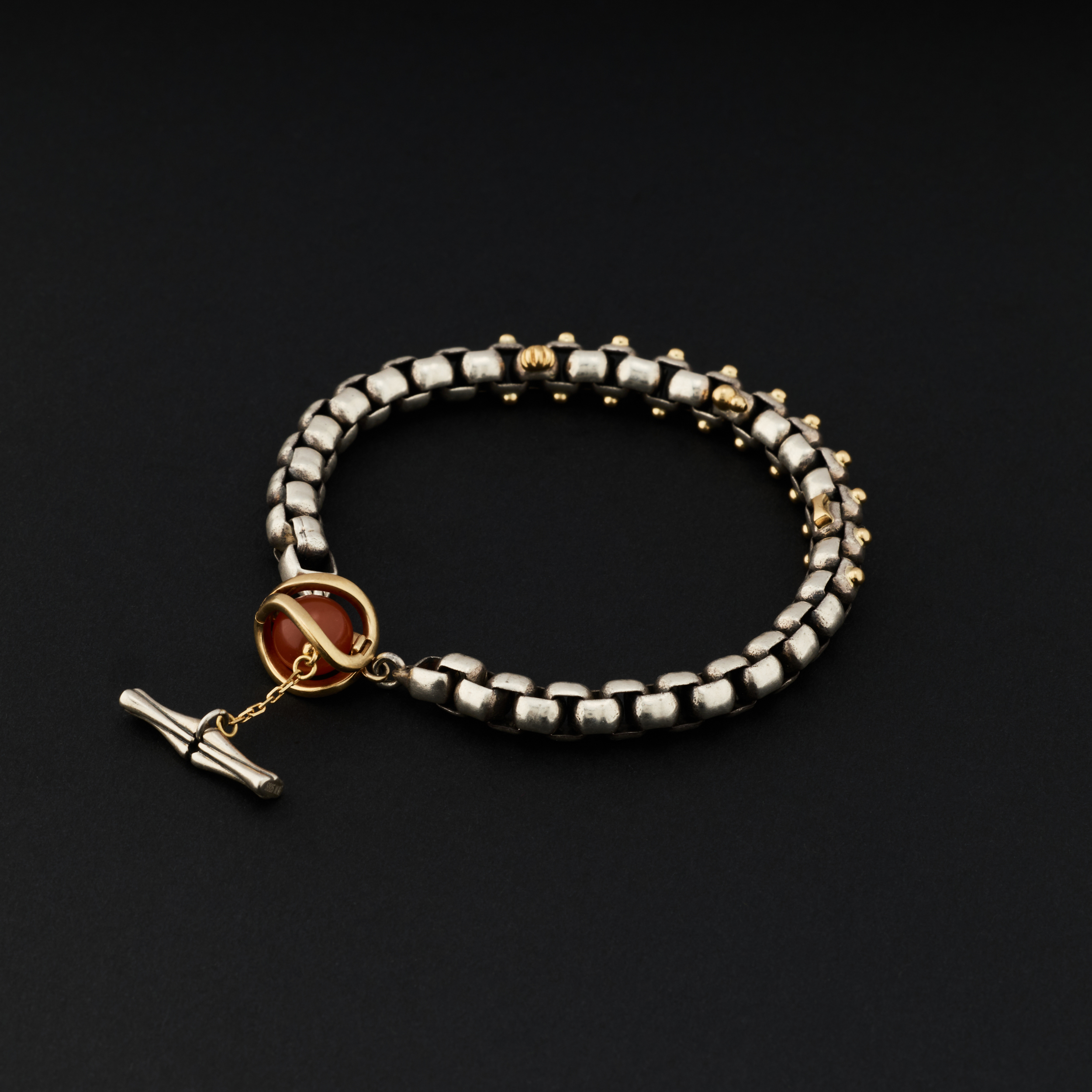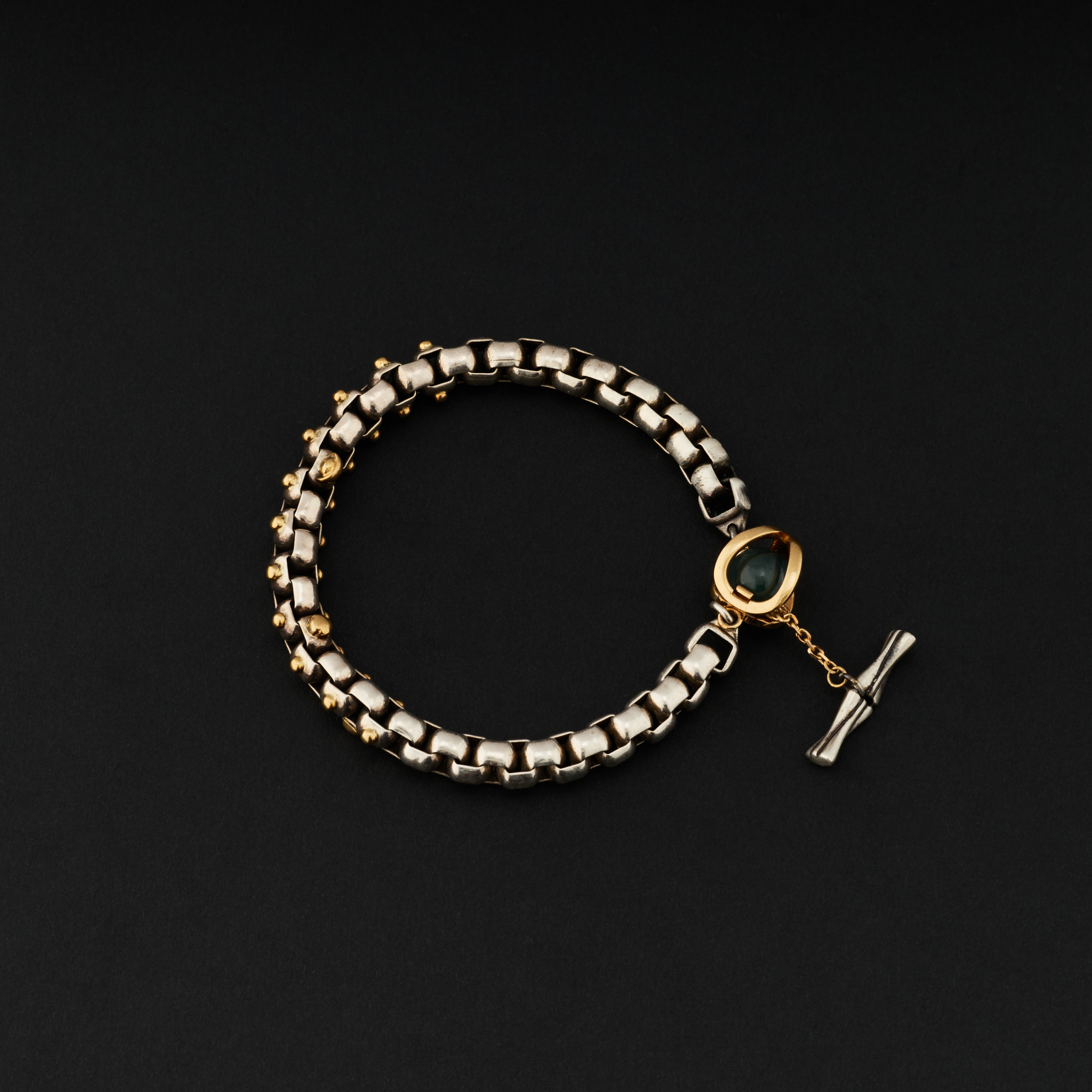 「 叁太子 」银嵌18K金粗手链