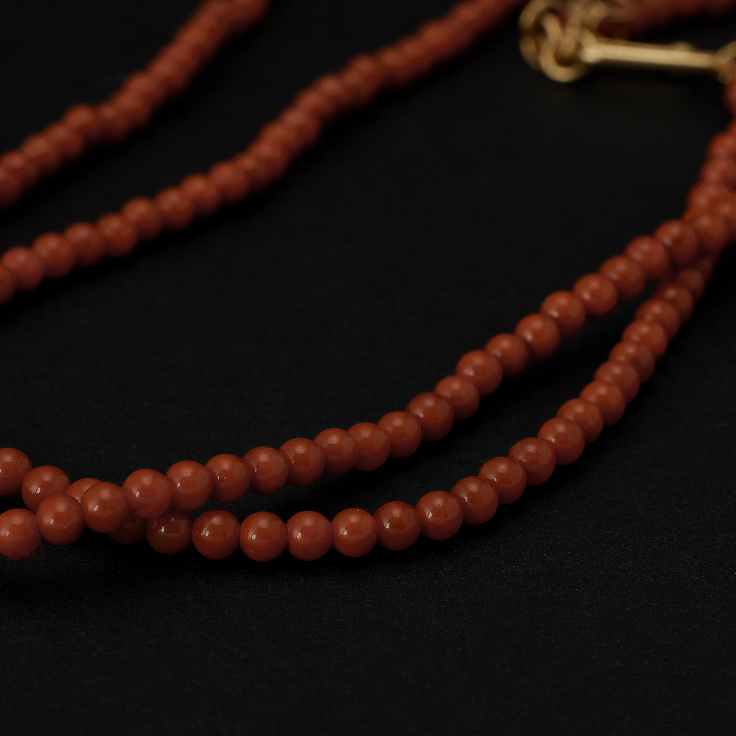 南红,选的是保⼭料,红得正,仅三毫⽶出头的珠⼦,赢在聚⽓,穿成⼀串,好似⼀条惹眼的红线